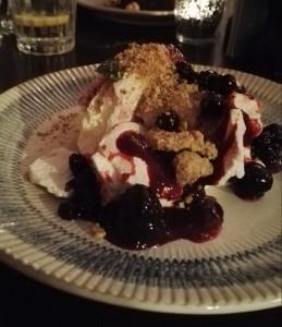 By this point, we were both pretty full, but considering adding a third course costs just £2 extra, it seemed rude not to. My Raspberry and Blackberry Pavlova, brought a taste of summer to the crisp winter's evening, but I have to admit to feeling a little jealous of Gemma's warm brownie, which was baked to be crisp and flaky on the outside, but deliciously indulgent and gooey on the inside.