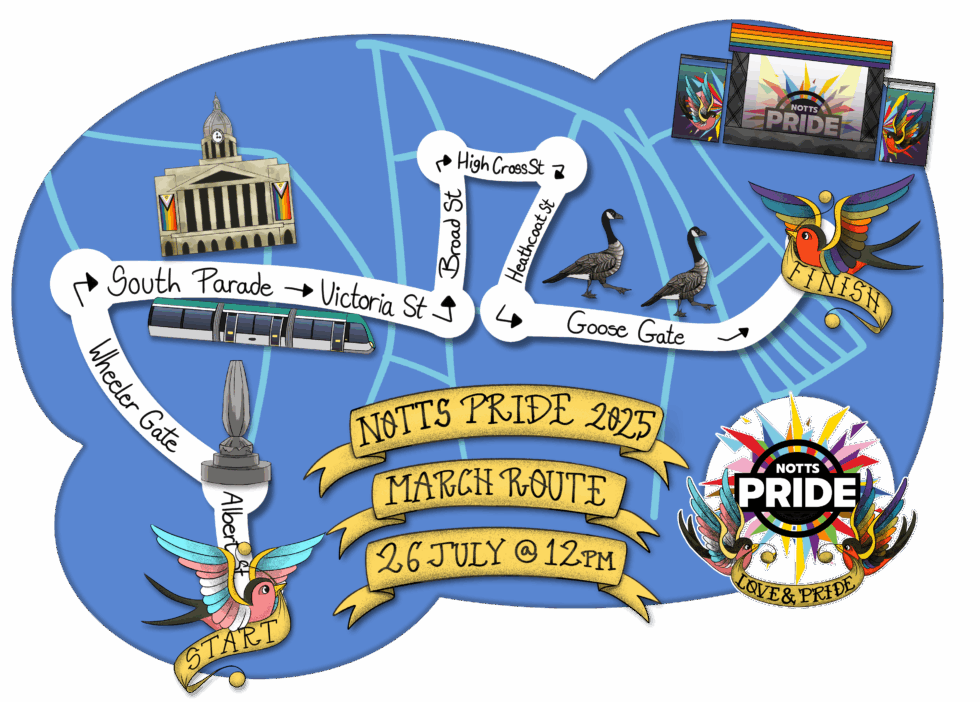 The day will begin with a visibility march through the city centre of more than 7,000 LGBTQ+ people and allies, starting at Listergate at 12pm (meet from 11am) and finishing at Sneinton Market.