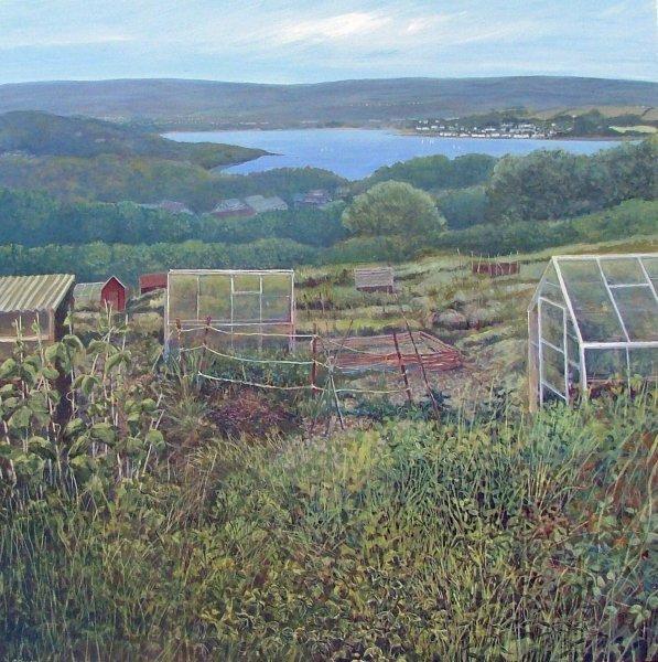 Inset image: Gillian Stevens Allotment View, acrylic]