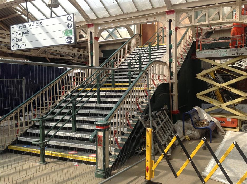 With all the improvements and modern additions, I was pleased to see that the fundamentals of the station have remained the same. Existing derelict buildings are being re-furbished in order to maintain the original charm of the site. One example that really shows the emphasis put upon modernising and maintaining original features is the refurbishment of the iron stair cases as you can see in the image adjacent. Each one has been given a new lick of paint and fitted with new steps. These are more health and safety conscious in their construction. There is also a one-way system in place to improve the flow of footfall. However, the original stair case iron-work remains and with the paint job, makes for a beautiful feature. All the iron work within the platform canopies is being re-painted as well, culminating in a fresh feel to the stations historic features.