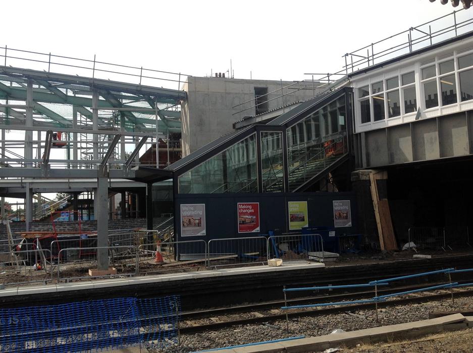 treated to watch a coach driver participating in a dance routine to entertain passers-by (not an everyday occurrence!). Darren provided me with a full guided tour of the station, working our way from one end to the other, taking in the main entrance and then each individual platform. The vast scale of the work is what strikes you first. The station will eventually be linked up to the new and existing tram lines running to Hucknall, Chilwell and Clifton, so to walk down platform 1 and see above you the new bridge that will carry the tram, engrosses you in the notion that this work is not just upgrading the station, it is creating a transport hub for the city and the county. New footbridges have been built to link the multi-story car park with the station and the tram, with three lifts included to provide disabled access to the station.