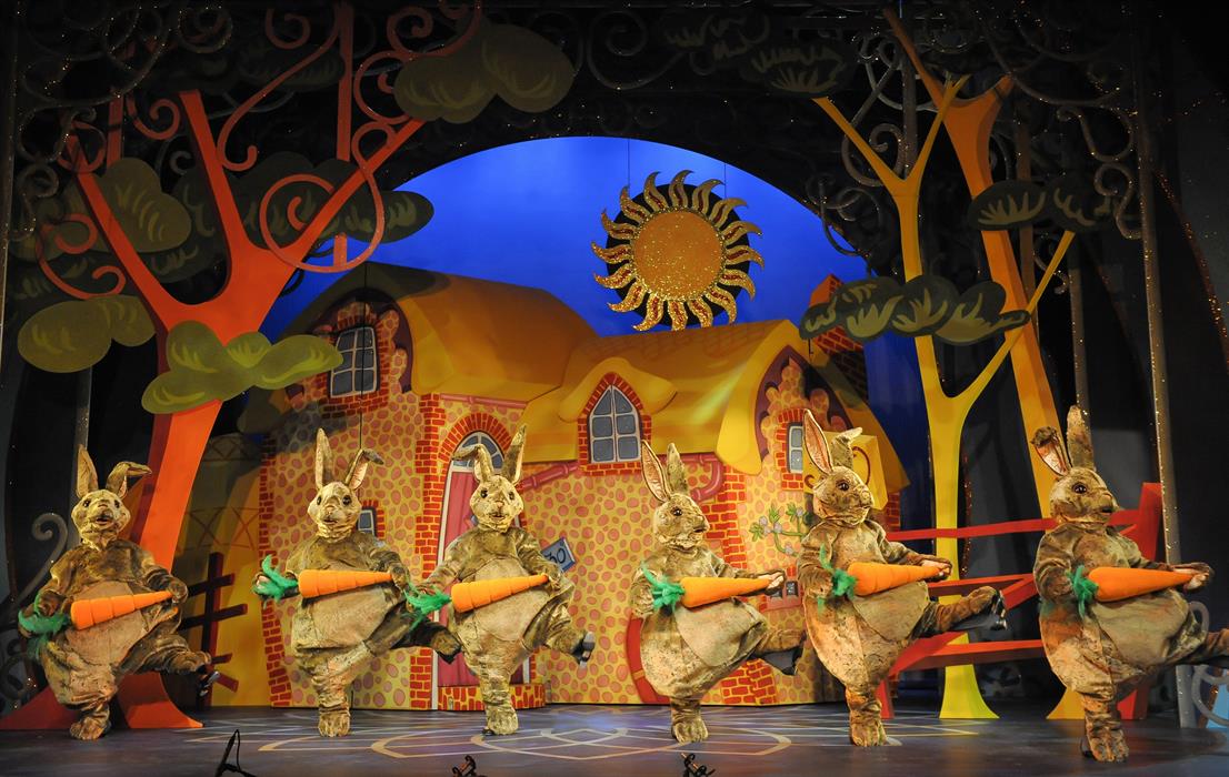 Among the highlights for me was the giant dancing rabbits, Kenneth Alan Taylor’s (or should I say Dame Daisy’s) flamboyant costumes, which were changed for every scene, and the encore of Mrs Blunderbore, Danny and Dame Daisy dancing to ‘What Does The Fox Say number. They even managed to get the whole auditorium onto their feet and join in.