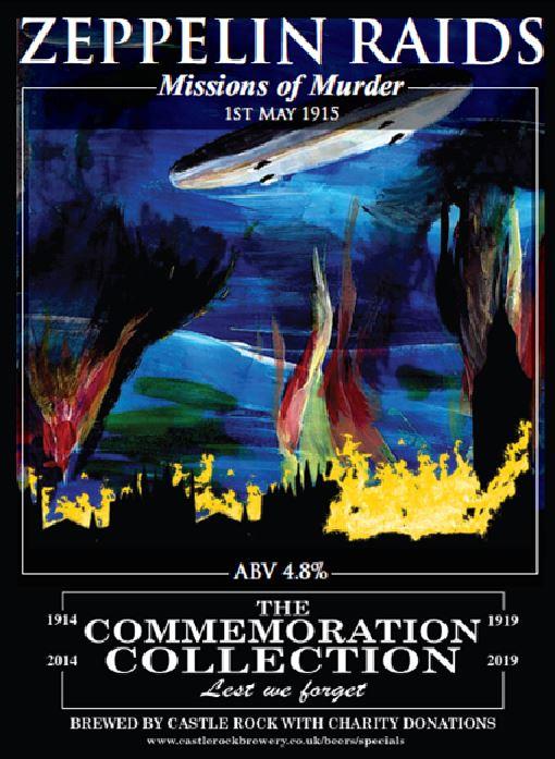Commemorating the Great War . . . Last summer Castle Rock launched the Commemoration Collection, a range of beers in commemoration of the First World War. With 10p from every pint donated to charity, the range will span five years of remembrance (2014-2019) to mark the centenary of the war. This May, the fourth beer of the range will be available. Named ‘Zeppelin Raids’, the German style smoked beer has an oaky aroma and lingering sweetness so it’s a great way to escape the spring showers. The beer has been brewed to commemorate the strategic bombing from German airships when more than 5,000 bombs were dropped upon Britain’s towns and cities, with a devastating loss of lives.