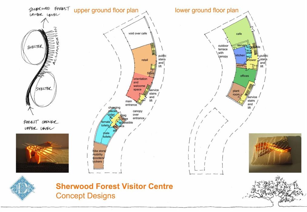Draft concepts of how the new Sherwood Forest visitor centre at Forest Corner at Edwinstowe could look have been released today by the RSPB-led consortium.