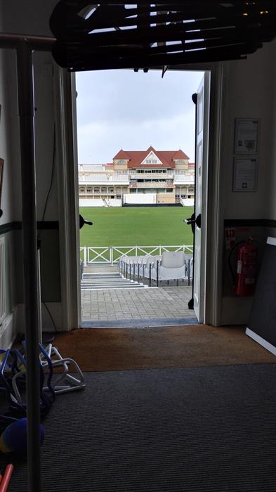 Firstly, we headed up to the highest point of the stadium, at the top of the Radcliffe Road Cricket Centre. Braving the weather, we enjoyed stunning views of the pitch, as well as panoramic views out over Trent Bridge's two sporting neighbours - Nottingham Forest's City Ground, and Notts County's Meadow Lane.