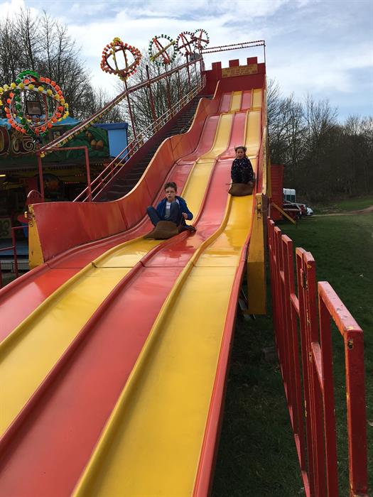 The fun fair sits beside a large field which is great for playing ball games on. Inside the fun fair itself are several rides which you'd expect to find at any travelling fair. There's a walk through ghost house, a mini roller-coaster, hook a duck, a large wavy slide and an arcade which has many 2p coin machines. These occupied the kids for absolutely ages. It's surprising how far £1 goes!