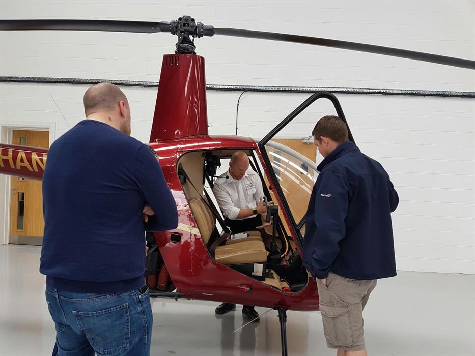 ‘Feeling slightly apprehensive the three of us followed James into the large hanger on the heliport and straight away were introduced to a beautiful black Robinson R22 two seat helicopter. James gathered us around and proceeded to give us a full run down about the helicopter make and then introduced us to the vast array of knobs and dials that made up the dashboard...lots to take in and a little daunting that each of us would be taking these controls in less than 20 minutes time! James however put us all at ease and as he would be giving us one to one tuition both on the ground and whilst in flight we felt in safe hands! The R22 also had dual control which took me back to my days of learning to drive, I’d never imagined at 17 that one day I would be taking the controls of a helicopter though...shouldn’t we have L plates?!