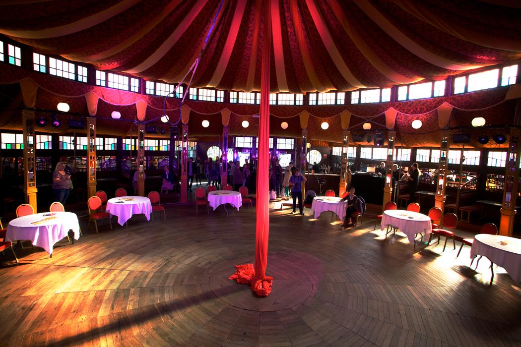 The Spiegeltent will be an intimate stage for Russell Howard, Matt Richardson and the Glee Club Comedy Spectacular, as well as host to a carnival of cabaret, burlesque, panto, circus skills shows. The circular central stage allows the entire audience of the tent a close view of performances and the beautiful red velvet draped ceiling, stained glass windows, private booths and gorgeous period lighting create a fantastic atmosphere inside.