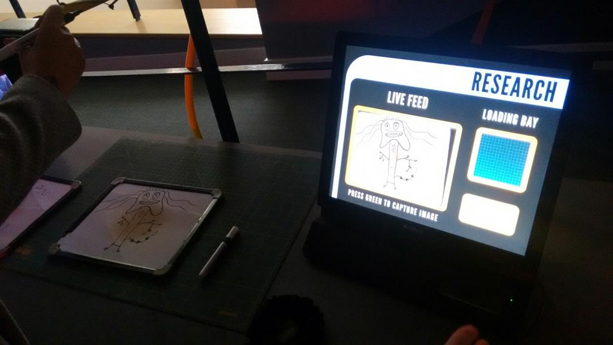 We were expecting a jolly good dose of button pressing escapism, but soon found there is a whole lot more to the NVA experience, with a stealthy educational aspect running throughout. A surprising majority of the games put importance on the user experience of actively designing and creating. We were invited to customise the visuals on the impressive ‘Mission Control’, and even create our own hand drawn alien bad guy!
