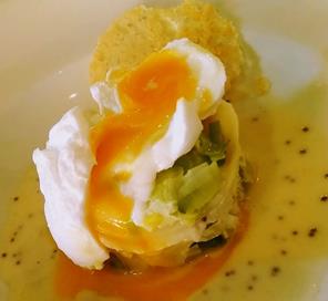 I had fortunately chosen wisely for my main course though I did wonder whether I was being served my dessert in error when it appeared out of the kitchen - it looked so pretty until I cut into it and realised that it wasn't a swirl of ice cream, it was an egg. A cupcake sized round of smoked haddock and leek lasagne, topped with a perfectly cooked poached egg and accompanied by a stunning parmesan wafer – oh my days – amazing!