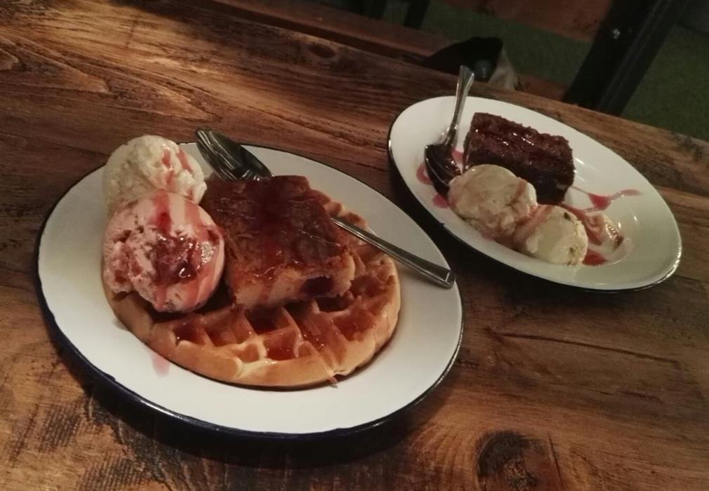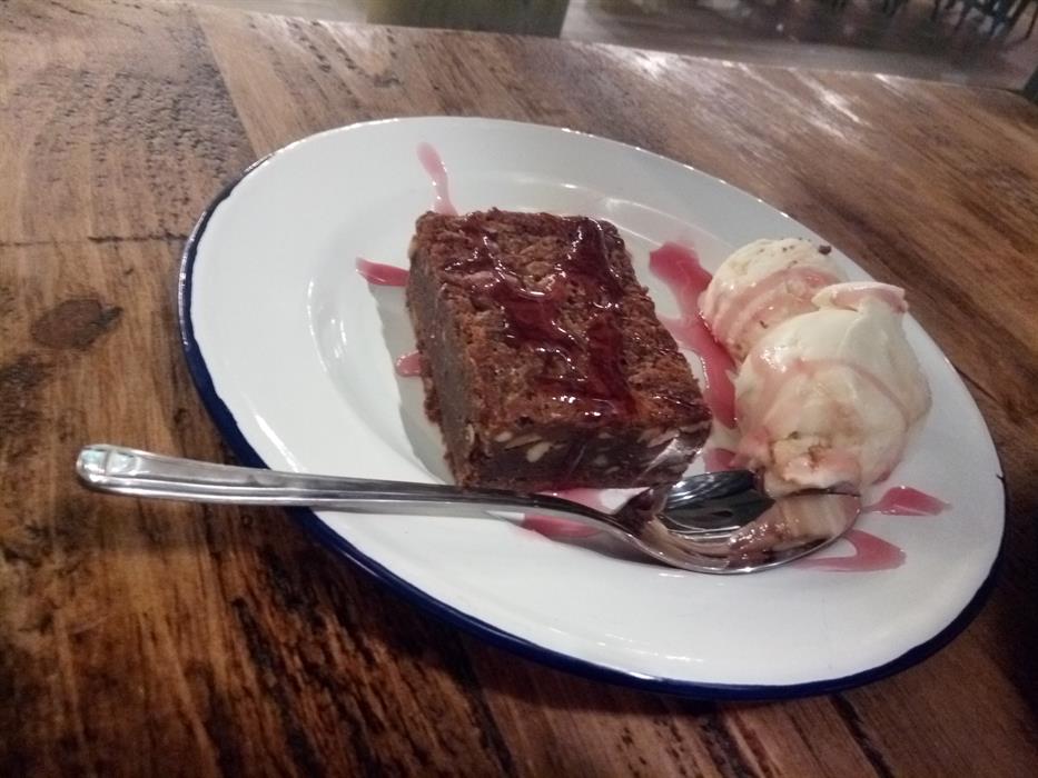 I opted for a salted caramel brownie, topped with honeycomb ice-cream and raspberry sauce. It was quite the decadent treat and absolutely delicious! The brownie was filling but oh I could have gone back for more of the homemade ice cream!