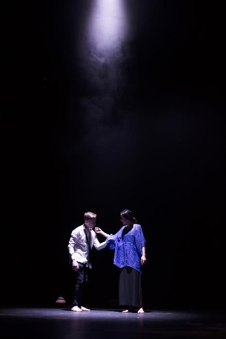 Enticed into a sensuous journey, the audience are forced to peep into the tumultuous mind of another as they follow Peter, an ordinary man lost in a barren space of uncertainty. His existence is fast paced and unfulfilling, with hands to shake, papers to shuffle and a briefcase to desperately cling to, but an uncomfortable desire lingers. From a pile of unassuming sand (the only prop on the bare stage) emerges a woman. Wild haired and unrestrained, she has a rose and a dance for Peter. When joined by three others, they descend as a mob whose only purpose is to wake him out of his day-mare and lure him into their world of uninhibited dance, freedom and release. Their carefree playfulness is punctuated with threatening whispers and shrieks, but nonetheless both Peter and the audience is tempted to join their vivacious gang. What follows is a wild and exotic ceremony to break down Peter’s stiff disposition and awaken the primal nature which has been forgotten.