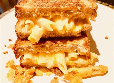 BIGMELT authentic artisan sourdough bread is baked about two minutes from BMHQ (That's BIG MELT HEAD QUARTERS) so it's always served nice and fresh. Packed full between two amazing Sourdough slices, expect taste buds to be tantalised, with an exclusive blend of Raclette, Red Leicester and Vintage Mature Cheddar, it's the perfect combination of flavour and all important gooey melt! If you like to 'dress up' your toasties, try experimenting by adding from a great selection of award winning and ever changing exciting garnishes. Especially mouth watering is their gammon ham, but so is the caramelised onion chutney & hot chilli jam! With gluten free and vegetarian options, choice is truly yours...