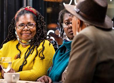 New Art Exchange’s CaféBar serves a 100% plant-based world food menu. Enjoy a meal, snacks, cakes and drinks, including Fairtrade coffee, in the comfortable setting of the award-winning contemporary building.