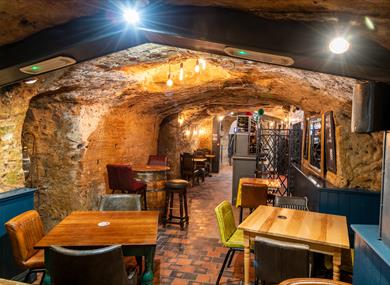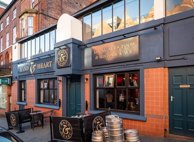 The Hand & Heart is a landmark pub located just a short walk from Nottingham City Centre. Built into the sandstone rock, the rear trading area of the Hand & Heart features a natural cave, providing a unique ambiance to this traditional English pub.