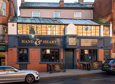An excellent Sunday Lunch is served every Sunday from 12pm to 5pm, with bookings advised. To the rear of the Hand & Heart is the famous Ropewalk and the residential Park area of the city. A short walk down the hill leads to the Playhouse Theatre, making the Hand & Heart an ideal spot for pre-show drinks.
