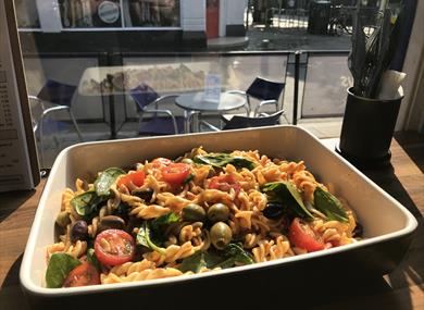 Everything is made fresh and to order so you can choose from a large variety of sandwich options and jacket potato toppings. Sandwiches can be served hot or cold and it all can be eaten inside or on our outside seating, or it can be taken away with you too.