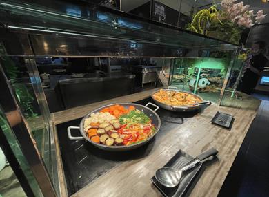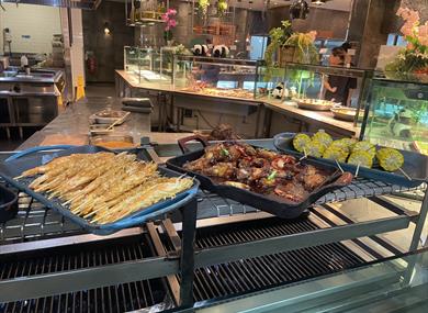Drawing inspiration from Eastern philosophy, it is believed that everything at Panda Mami is interconnected. The talented chefs craft a daily feast of more than 250 authentic dishes, representing a global culinary tapestry. Their extensive menu spans the culinary spectrum, encompassing Chinese, Indian, Japanese, Italian, Spanish, Carving Roast, Vegan, Vegetarian, and a sumptuous array of desserts.