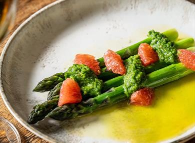 Led by Michelin-trained Head Chef Henrik Horvath, the kitchen blends global influence with precise execution — from beef short rib croquettes with jalapeño salsa to asparagus with brown butter, wild garlic pesto and grapefruit segments. Think seared beef sirloin with chimichurri butter, or confit garlic and gochujang-glazed chicken with house pickles — dishes designed to surprise and delight. A curated sushi offering, led by specialist chef Chris Brown, adds another layer of technique and variety to the menu.