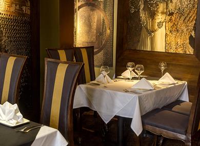The restaurant exudes opulence, with lavishly decorated interiors, traditionally dressed waiting staff and authentic Indian recipes. The menu is created using fresh produce - all in their own spicy aromatic sauces that give an explosion of flavour with every bite.