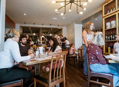 The large restaurant covers 2 floors and a buzzing street terrace, with bi-folding windows opening onto the beautiful hill of Carlton Street. Thanks to their open-plan kitchen and wrap-around dining bar, you can watch their energetic team create your dishes and drinks in front of you.