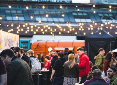 Bustler Market is open weekly from Thursday - Sunday and just a short walk from Nottingham City Centre, and minutes from the Motorpoint Arena - It is the perfect place to enjoy a hand-picked selection of craft beers, organic wines & cocktails teamed with local talent on the decks, live music and ample indoor & outdoor seating.