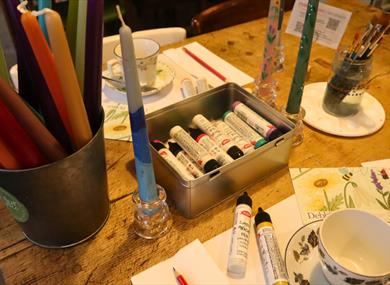 Candle paints and brushes.