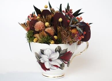 Participants can design their own floristry arrangements using naturally dried and preserved flora in beautiful vintage crockery during this floral-inspired crafting session.