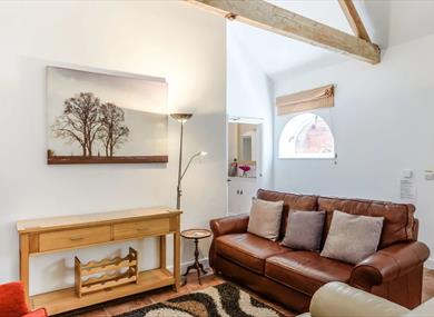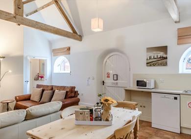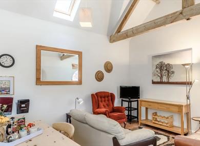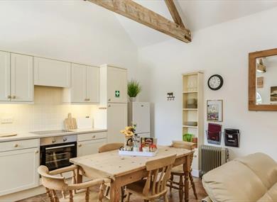 As you make your way inside up the convenient ramp, you'll immediately be captivated by the bright and inviting open-plan living space, adorned with original barn features and boasting cosy underfloor heating.