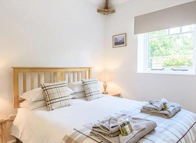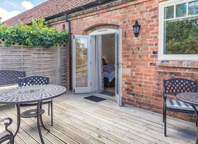 The second bedroom leads to a decked area where you can relish alfresco dining in the sunshine while taking in the breathtaking countryside views.