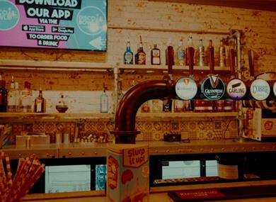There are two bars serving a wide range of beers, spirits and cocktails alongside our famous hand stretched pizzas.