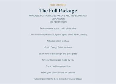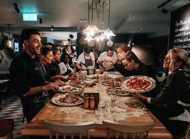For parties and events, The Gusto Pizza experience is not to be missed… Join at the chef’s table for two to three hours of fun, flour, feasting & fizz. From dough-making to pizza baking, and everything in between, you’ll go ‘dough to dough’ with your fellow guests in a fun competition to be crowned Best Pizza Maker. Get in touch via the website to find our more! ‘’