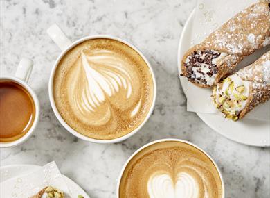 The Espresso and Cannoli Bar is open from midday every day for your daily coffee fix.