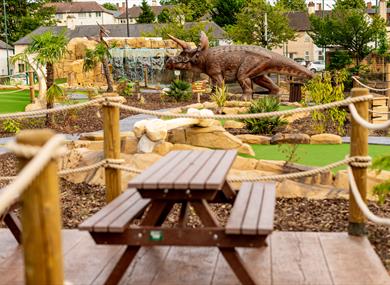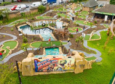 Roar-some fun awaits families and fun seekers at Nottingham's new Jurassic Cove Adventure Golf course. One of the best dinosaur themed adventure golf courses in the UK, fit with challenging holes, suitable for all ages and family fun!