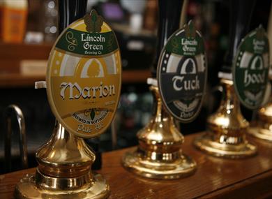 Our core range of beers are named with a respectful nod towards our local hero: Marion Pale Ale, Hood Best Bitter, Sherwood Extra Pale Ale and Tuck Porter. Four seasonal beers reflect the time of year; Spring Green (available January to June), Village Green (available July to September), Hallowgreen (available October) and Holly Green (available November and December).