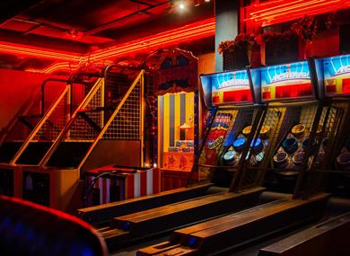 Creating a place for everyone to come down and enjoy. Sourcing the very best in nostalgic and vintage arcade games from ski ball, air hockey and even donkey derby to name just a few. They have then placed them all in a bar surrounded by retro references.