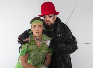 Although the show has traditional pantomime elements, it is so much more...including a stellar cast with BOY GEORGE debuting as Captain Hook! Boy George said: "I'm really looking forward to playing Captain Hook and showing off my evil side! I make my first entrance on a life size galleon that sails around the stage in front of an amazing water-wall fountain."