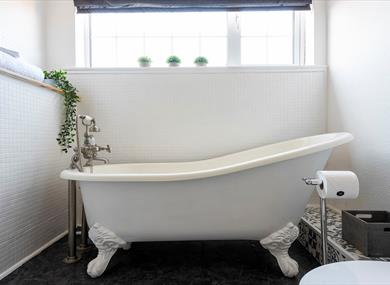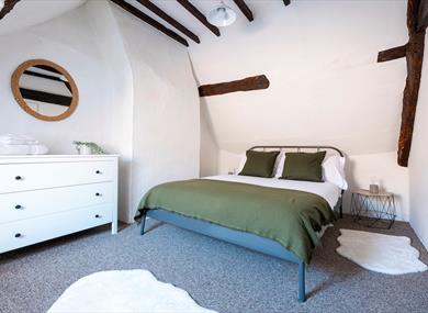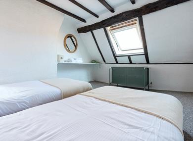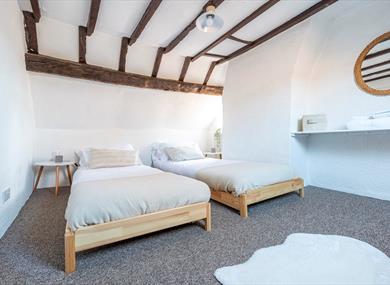 Sleeping up to five guests (maximum 4 adults) and set over three floors, the cottage is accessible through a private entrance and spacious hallway which doubles as perfect storage for bikes, golf clubs, coats, and boots. Once inside, a few stairs lead to the living room, kitchen / diner and large family bathroom complete with a free-standing rolltop bath and separate walk-in shower. A few more steps up to the second level where you’ll find a a cosy snug and light and airy master bedroom with a double bed. A winding staircase leads up to the third-floor loft-style space with two additional bedrooms – one with a double bed, the other with twin beds which can be configured to make a double on request.