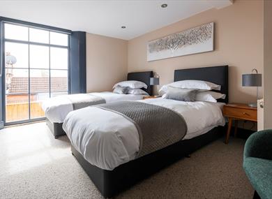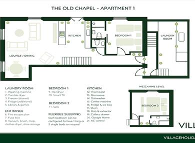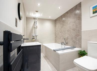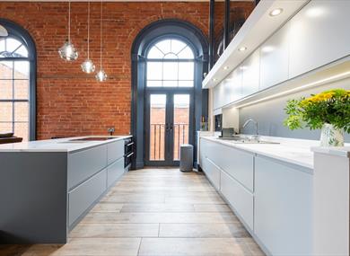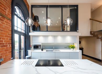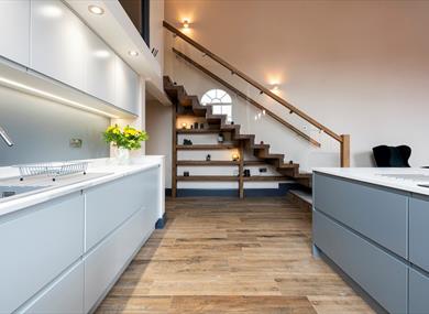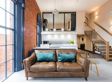 Each bedroom can be configured to have 1 king or 2 single beds on request; bedroom 2 is a large room on the mezzanine floor complete with a super king bed. Both bedrooms have modern en-suite bathrooms / wet rooms with beautiful finishing’s.