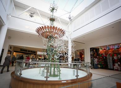 The water powered clock has the official name, The Aqua Horological Tintinnabulator, but is also referred to as the Emett Clock or the Victoria Centre Clock. Sculptor Rowland Emett, (22 October 1906 – 13 November 1990) was a cartoonist, artist, inventor and builder of mechanical and wacky inventions. His most famous work has to be the car and inventions which appeared in the 1968 film, Chitty Chitty Bang Bang.