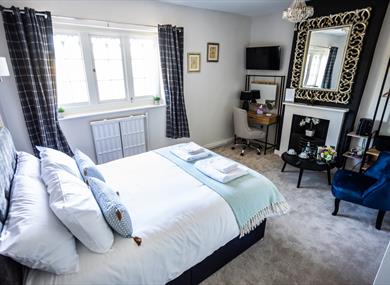 On-site parking is available for guests. The bedrooms are all individually designed in a contemporary style which blends with original features to create the perfect environment for relaxation. In addition, each room has a beautiful view over the gardens or the rolling hills of the village.