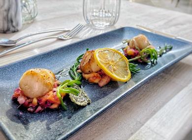 Using locally sourced ingredients, Tom draws inspiration from traditional British food whilst adding his own imaginative twist, to produce beautifully presented, flavoursome dishes. Choose wine pairings from a carefully chosen selection to complete the experience.