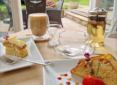 Meet with friends and enjoy Stewarts Coffee blends and a variety of freshly baked cakes, or enjoy a gin and tonic on the patio.