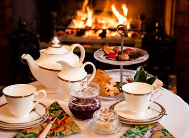 Relax on comfy leather sofas by crackling log fires in the winter or enjoy cocktails on the Terrace Bar in formal gardens during the summer! Renowned for traditional Sunday lunch and also Afternoon Teas served on lovely vintage china.