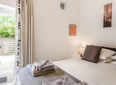The second bedroom leads to a decked area where you can relish alfresco dining in the sunshine while taking in the breathtaking countryside views.
