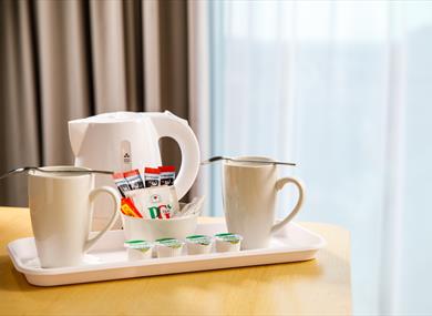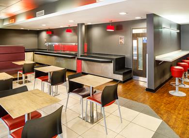 The bright and airy bedrooms each have a flat-screen TV with satellite channels and internet access. Rooms also feature a work desk, tea/coffee facilities and a private bathroom with a power shower. Guests can enjoy an all-you-can-eat buffet breakfast each morning, including cooked items, seasonal fruit and fresh coffee. Light snacks and drinks are also available 24 hours.