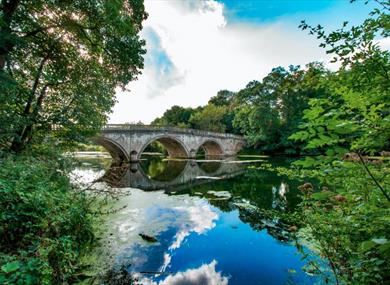 Grade II* listed Ornamental Bridge built between 1763-1770 by Stephen Wright, designed to lead guests from the opposite side of the lake up to a Palladian-style house which once existed on the estate.