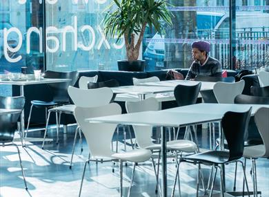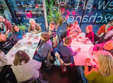 New Art Exchange has a CaféBar serving a delicious world food menu. Why not drop in and try their unique Fairtrade coffee, with beans sourced from India, Papua New Guinea, Brazil, Ethiopia and Indonesia.