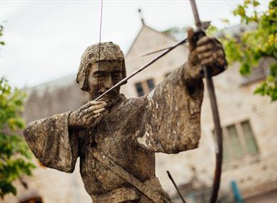 Sculpted by artist James Arthur Woodford in the early 1950s, this beautiful motif of Robin Hood was commissioned by Philip Clay, as a gift to the city of Nottingham. Clay spent £5,000 on the 7ft tall commission and its surrounding plaques in order to link Nottingham to the lore and also for the 1947 visit of the then Princess Elizabeth II and the Duke of Edinburgh to mark the town’s 500th year anniversary.