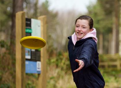 You can also have a go at disc golf. It's like regular golf, but with flying discs instead. It's surprisingly easy to pick up and great for both adults and children. The aim is simple: follow the nine-hole course and get your disc into each basket in as few throws as possible. You can hire discs at the visitor centre, there are no course fees, and there's no need to pre-book. You'll get the hang of it in no time!